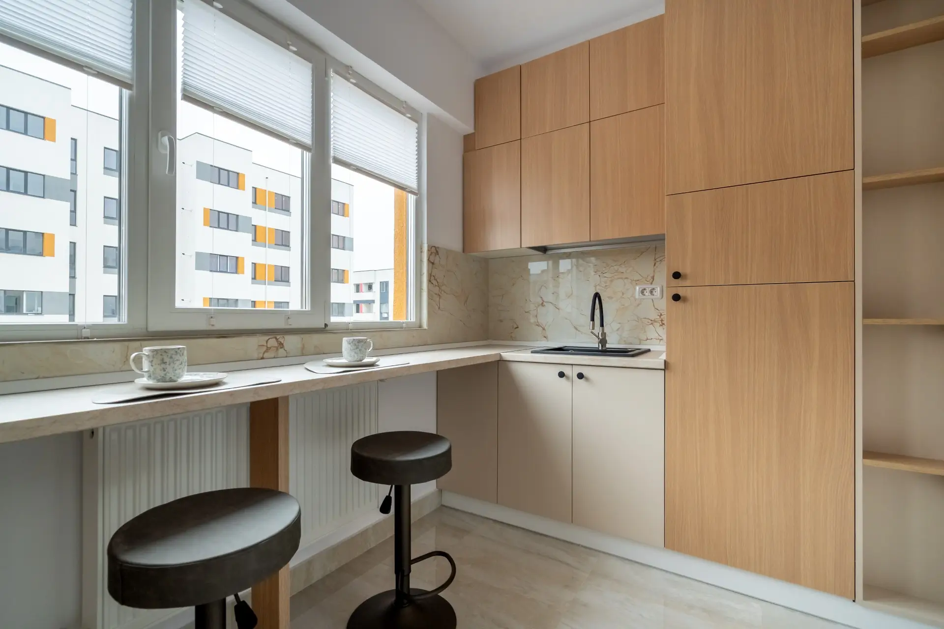 Pret proprietate finisata + proiectul de design ( include mobilierul si electrocasnicele prezentate ) : 56.905 Euro + TVA