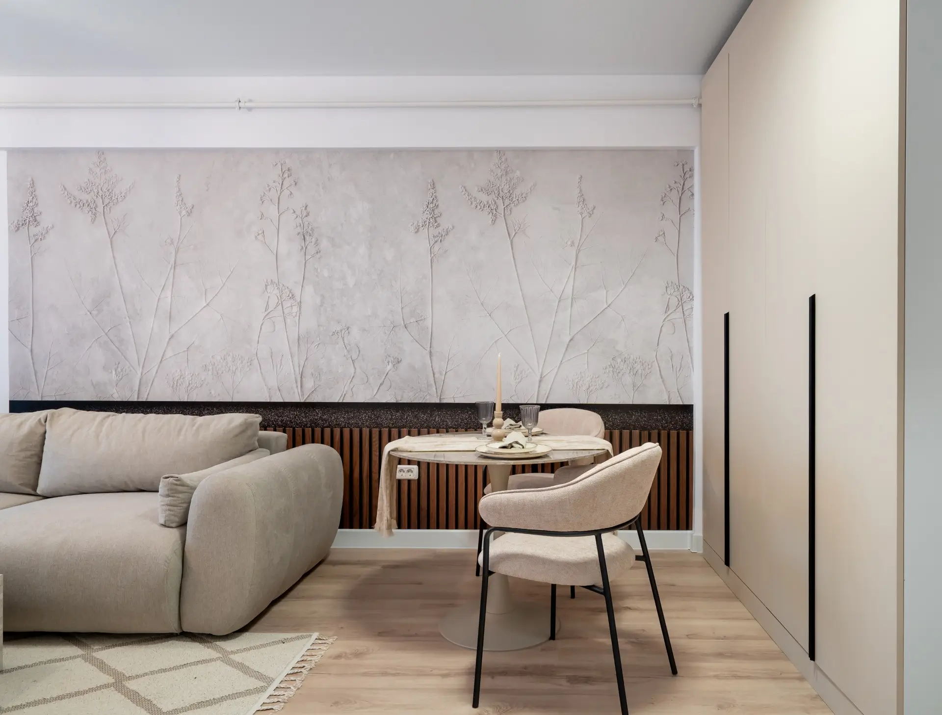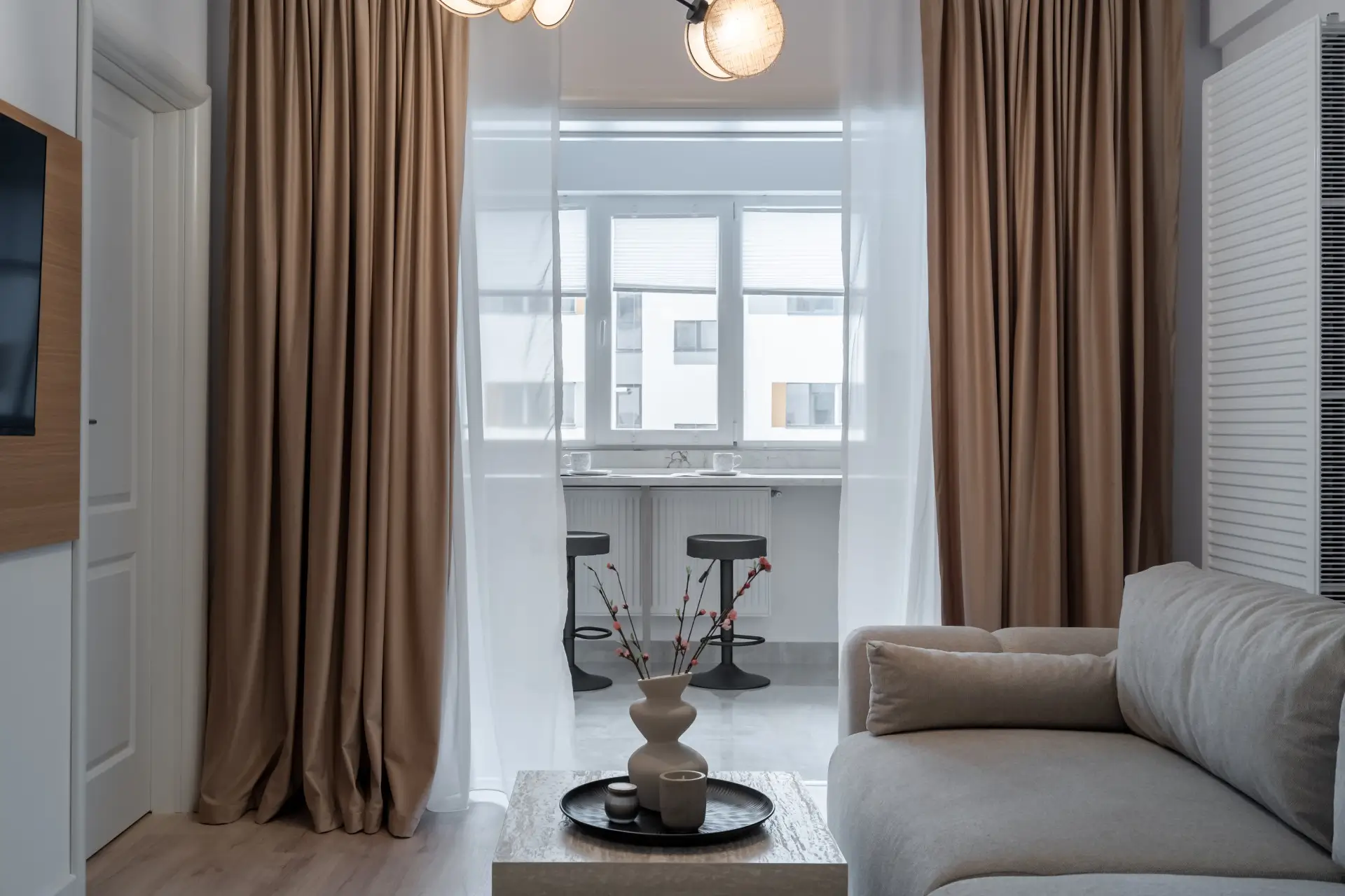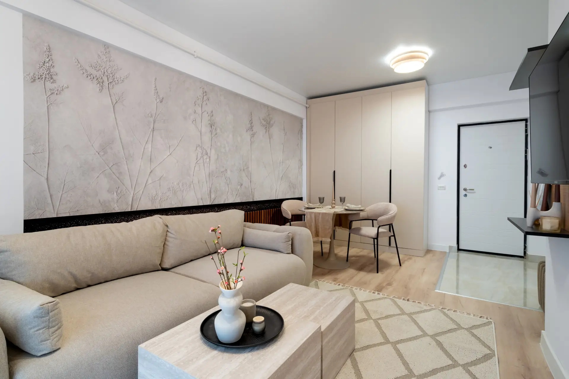 Apartament cu 2 camere tip studio situat în cadrul ansamblului rezidențial Militari Residence, într-o zonă dinamică din vestul București, aflată în continuă dezvoltare și cu acces facil către numeroase facilități urbane. Proprietatea impresionează printr-un design contemporan cu accente elegante, unde finisajele atent alese, texturile calde și mobilierul realizat pe comandă creează un ambient armonios și sofisticat. Spațiul este inteligent organizat, oferind senzația de deschidere și fluiditate, în timp ce fiecare detaliu contribuie la un stil coerent și rafinat. Atmosfera este una modernă și primitoare, transformând locuința într-un spațiu care nu doar arată bine, ci se și simte bine, perfect integrat într-un stil de viață urban activ.