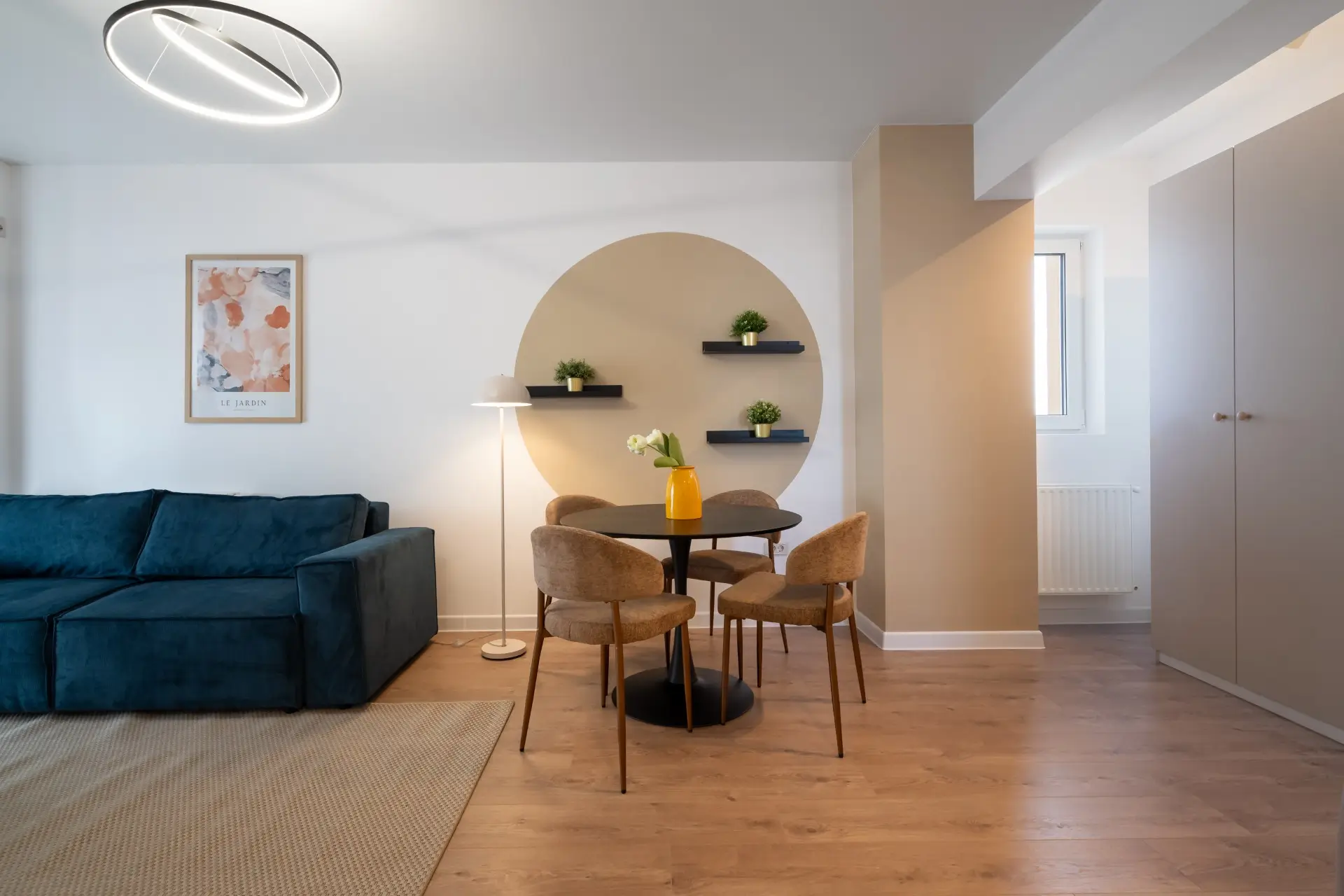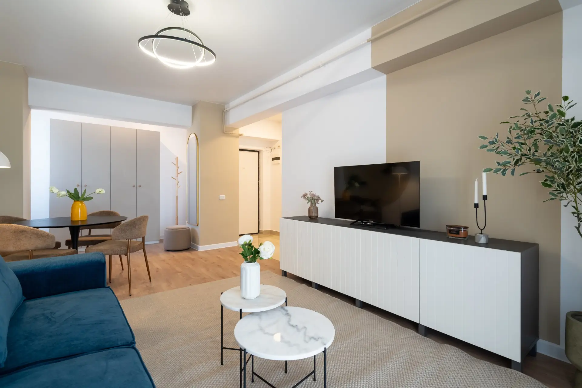 Apartament cu 2 camere, complet mobilat și utilat, situat în Complexul Central Address Residence, într-o zonă centrală și vibrantă a Bucureștiului. Designul modern pune accent pe funcționalitate și confort: bucătăria este separată, livingul este spațios și luminos, iar dormitorul oferă intimitate și relaxare. Finisajele de calitate și mobilierul ales cu atenție creează un ambient elegant și primitor, în timp ce poziția centrală asigură acces rapid la cafenele, restaurante, magazine și mijloace de transport, oferind combinația perfectă între stil de viață urban activ și confort acasă.
