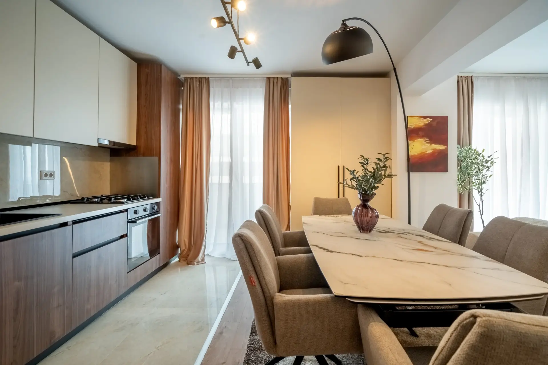Preț proiect design (se achiziționează separat; include mobilierul și electrocasnicele prezentate): 26.000 Euro TVA 21% inclus